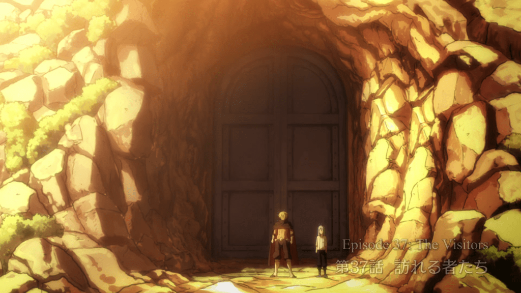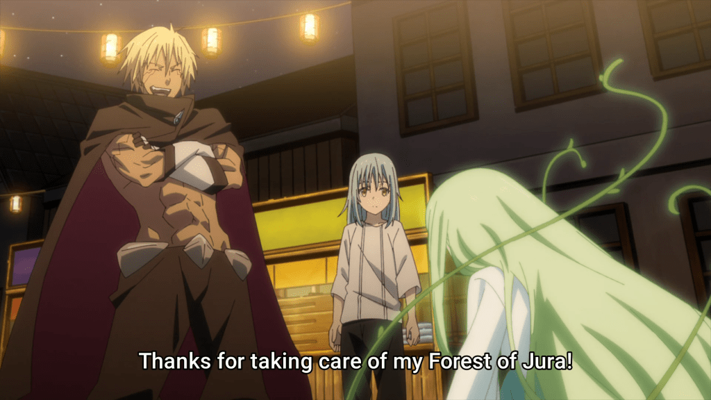 This is Episode 37: The Visitors. Pretty standard title, but has it been 36 episodes already? I guess that adds up, I should go back and watch the earlier episodes again, for science. Would be fun to do a review about them as well, leave a comment down below if that’s something you’d be interested in. Veldora is so extra and I love it. Is he going Super Saiyan? Can they do that without breaking copyright laws? Maybe he read one too many manga volumes in Rimuru’s memory. Either way, back to town we go and to introduce Veldora to the gang. I can’t imagine them being too surprised to see the ancient dragon of the forest in the flesh. Treyni is the first one to recognize him and welcome him back. Man, I can’t get over what a character he is, it’s amazing. This show just gets better and better.