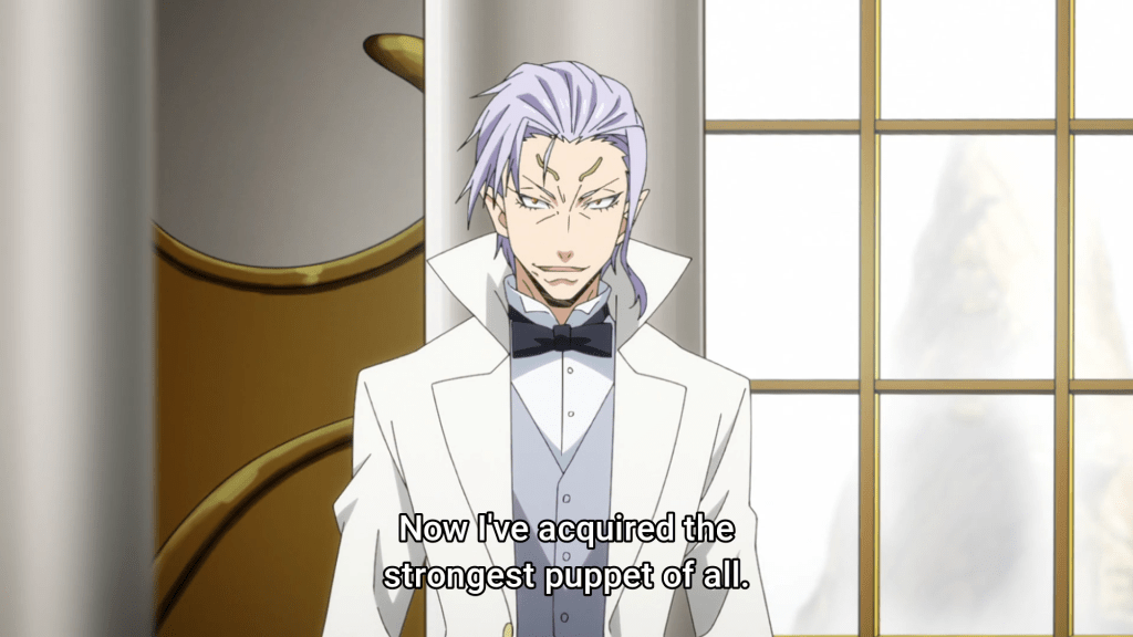Speak of the devil, we finally learn about why Milim has been working with Clayman. Demon Lord Frey tricked her into wearing a brainwashing magic item. The show portrays her as a little bit remorseful, but this betrayal stings. Milim is so lovely and trusting, and to be betrayed like that is awful. Especially seeing how Clayman treats her afterwards. He promises to make Sky Queen Frey the ruler of the heavens, which seems to be the reason why she’s working with Clayman, but it wouldn’t surprise me if she at some point takes off the necklace to release Milim on Clayman. We’ll see what happens when Rimuru gets involved. Clayman and friends still certainly seem to be underestimating him.