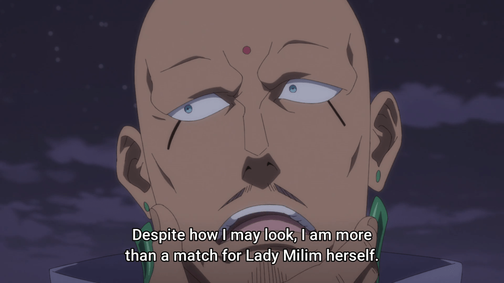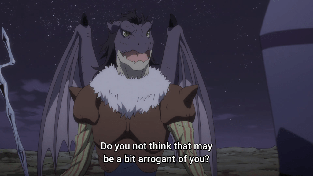 So after 7 full episodes of build-up we finally get into the fights themselves. I’ve seen a fair bit of discourse on reddit over the weeks about how this show is taking too long to build up and it’s spent 7 episodes on 1 episode of pay-off. I agree with this sentiment in theory, but not for this particular show. I’m a big fan of good world-building, and I feel like Slime is doing a fairly decent job at this so far. I’m very excited about the political aspect of this show, and less about the fighting. The fights haven’t looked particularly impressive either, which is unfortunate but not surprising. Anyway, moving on to the episode itself. This episode covers three main fights, one of which got me quite excited.
