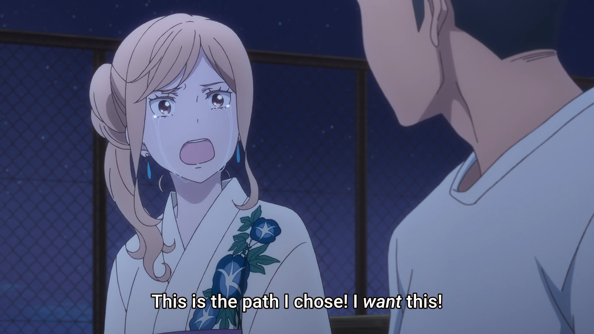 I was worried the show was going to leave us hanging and the ending to Kaoru’s backstory wasn’t going to be satisfying. She chose her dream over the wavering Tsuji, and although I do feel a bit bad for the guy, it ended up working out alright in the end. Not every relationship is meant to last, or even to start properly at all. Sometimes meeting someone and then parting ways after a little while will be enough for that someone to have a profound effect on your life. It’s those people that you meet and never forget that make you who you are, that drive you to strive to be the best you can be. And fortunately, Tsuji hasn’t forgotten about Kaoru and their arc gets resolved in an extremely satisfying manner.
