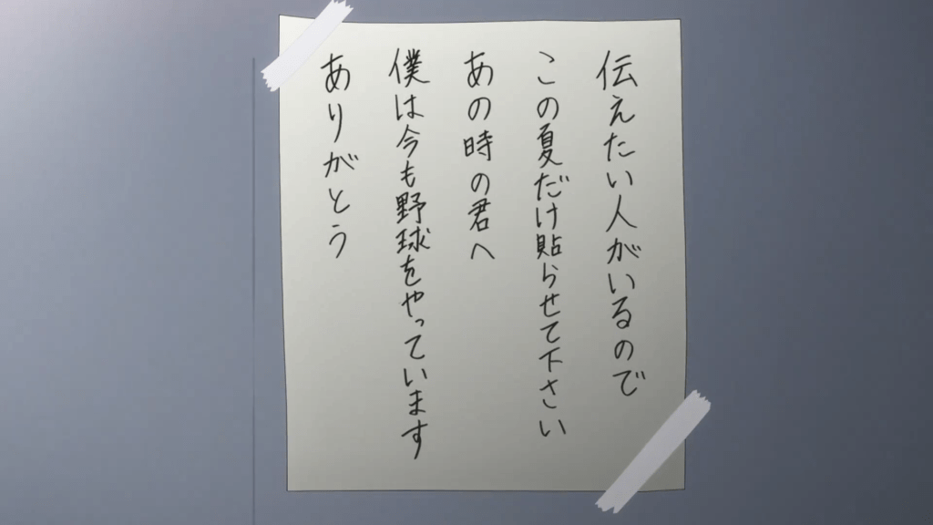To keep a long story short, the two get along well and develop an interest in each other romantically. The interactions they have are built up very well for a relationship spanning only one episode and it takes no effort to believe that these two like each other. Unfortunately Kaoru gets a realization towards the end of the episode. The pressure they feel is different. And Tsuji’s moment of weakness, so to speak, scares Kaoru greatly. She immediately runs away from the situation. It looks like she pushes him away out of a sense of dislike of his line of thinking, but I don’t think that’s fully it. Tsuji wavers and thinks for a moment if being compared to his brother and becoming as good at baseball is really what he wants for himself. Kaoru doesn’t waver. But the thought of giving up has surely crossed her mind at some point, seeing as this is her fourth and final attempt. Even her grandmother told her that she was free to choose another career path if she wished. So now Kaoru recognizes the legitimacy of Tsuji’s wavering and it makes her very anxious. So anxious that she would immediately push the boy away, out of fear for having to confront the option of giving up.