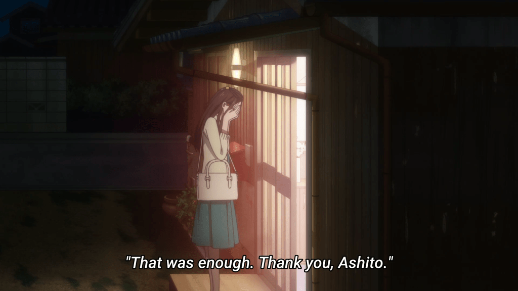 The letter is nice on its own and contains some cash. There’s an apology from his mother for not seeing him off and not properly talking to him. She admits to being selfish but aren’t we all? She’s working hard to pay for his life in Tokyo. Man I’m tearing up again, she’s giving him her savings to follow his dream. This is parenting done right, I love her so much. She also admits to overhearing Ashito’s conversation with Hana on the phone.