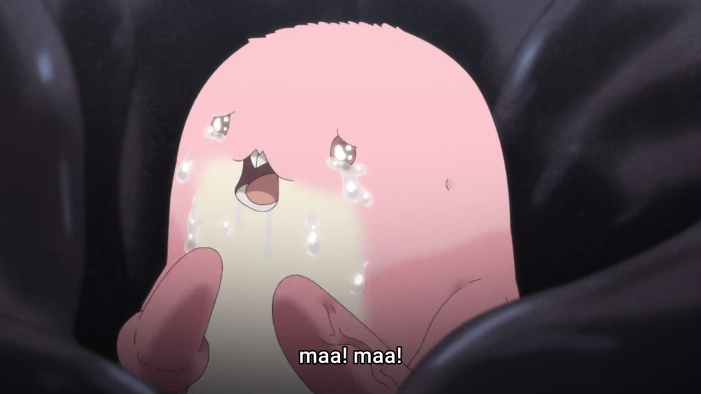 So that gives us the conclusion to this episode. Like last time, this covers more of Volume 6 of the manga, with a hint of Volume 8 in the last minute of the episode. Can we all pour one out for Ma who just wanted to play with Meinya and ended up watching all their prized possessions destroyed before being shredded to bits. The village of hollows don’t fuck around. Where the first two episodes were fairly tame, this episode really started upping the weirdness that I’ve come to know from this manga. At some point the manga went from a curious and cool idea to a challenge of how weird can it get before people lose interest. I think that’s the reason I’m still reading this manga. It’s so incredibly bizarre and I’m pretty sure the author has some issues with the way he likes to portray little children but at the same time it’s also such a compelling story that I can’t look away. And the show’s popularity makes me think I’m not the only one. Enough rambling from me though, I’m already looking forward to next week’s episode. And as always, thanks for reading.