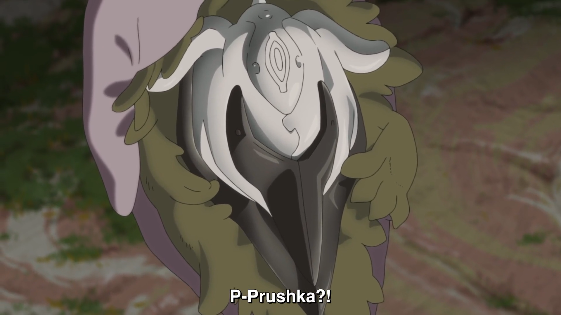 “It’s an instrument in the form of a crystalized person.” Vueko remarks. The jeweler tells Riko to take it and run, as the dangerous creature approaches. Also, the jeweler was way too into carving Prushka, and it’s probably best they only talked about it after Riko left the shop. The weird jeweler then gets brutally murdered and Kaja says that this creature has been in the village before. That’s a bad sign.