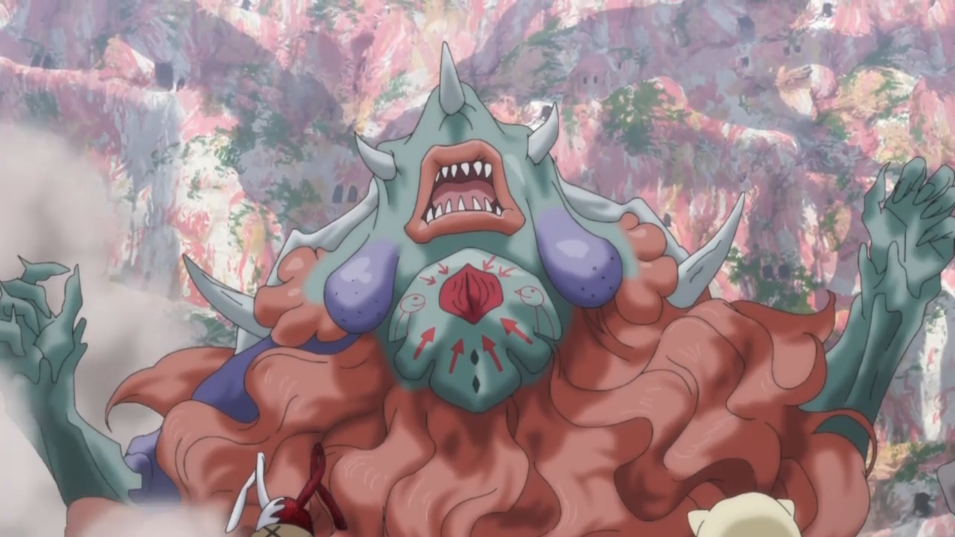 The villagers freak out about the appearance of Reg with a part of Faputa. Not just the villagers, but the village itself is upset as well. Tentacles similar to that of the balancing appear and a distressed Vueko explains to Reg that it’s probably not a good idea to bring this directly to Belaf. This is because she knows how upset Belaf got at the knowledge of eating Irumyuui’s children. Perhaps he still feels that way inside. Apparently Reg has the power to let Faputa into the village by using his incinerator. At least Faputa seems to believe he does, and he’s now promised he would do so, allowing Faputa to wreak havoc on the society that wronged her and her family so much. And of course this is the moment Wazukyan decides to show his face again.