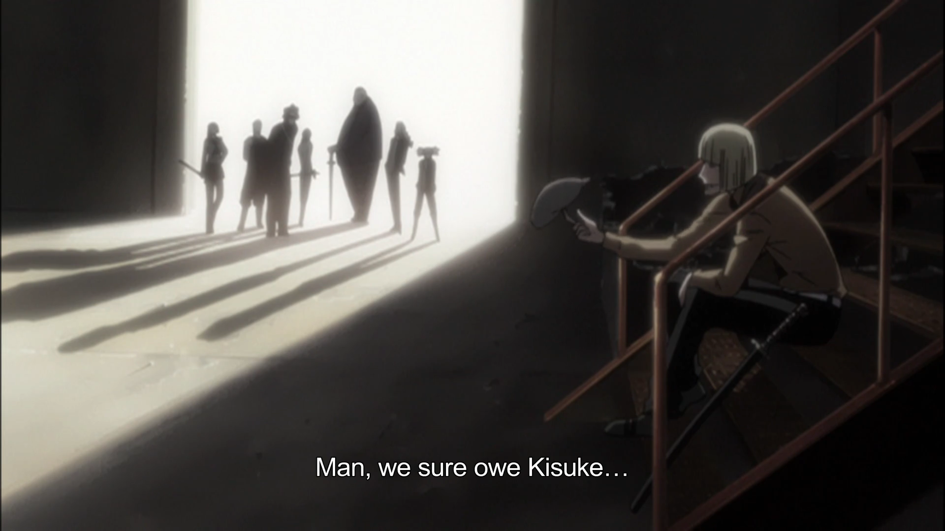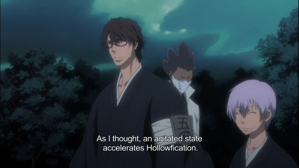 We once again jump to a different time period. Nine years ahead, which makes this 101 years before the current events of Bleach. Urahara, Kurotsuchi, Akon, Hiyori and their squad are fully in charge of the department of research and development at this point and Urahara has been working on a new type of gigai. Meanwhile, people have been disappearing in the Rukon district and Kensei and Mashiro go to investigate. There they are ambushed by Aizen Sosuke, Ichimaru Gin and Kaname Tosen, who had been a squad member of Kensei’s. When Urahara is warned, he sends Hiyori to help out. The captain commander then sends over Lisa, Rose, Love, Shinji and Hachi. He demands Urahara stay behind. When they all get there, they find that both Mashiro and Kensei have been hollowfied somehow and are much more powerful than they were before.