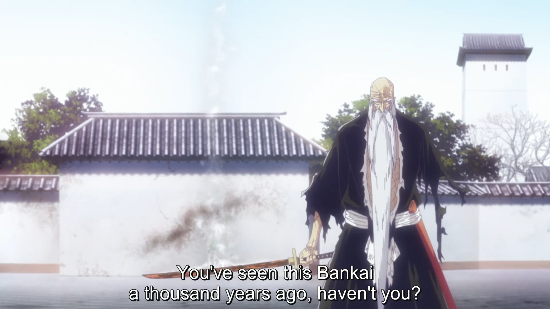 Well, of course it wasn’t as simple as that. It turns out that this Yhwach was a fake all along. Yhwach went over to kill the rest of Yamamoto’s friends. The one that Yamamoto was fighting was really Stern Ritter Y: Royd Loyd. It turns out Yhwach’s real goal here was to have a chat with Aizen Sosuke. Remember Aizen, glasses, hypnosis power, bit of a dickhead. Yhwach thinks they have the same goals, but Aizen disagrees. And here’s the kicker. Now they show off that Yhwach himself is strong enough to steal Yamamoto’s bankai. This is looking pretty bad for the Soul Reapers right about now. And with one well aimed strike, Yamamoto Genryuusai, Captain Commander of the Gotei 13, is down.