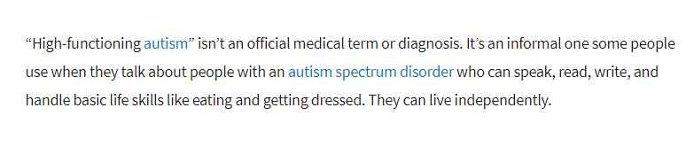 You see, there is a problem with labeling people as high functioning. This, to me and many others, signals that someone is very good at functioning. It almost implies that you’re better at functioning than the average person. That’s not the case for most people. What you’re actually seeing is people who are on the spectrum getting really good at doing the things that make them seem like they’re functioning well. They’ve learned thought pattern recognition through cognitive behavioral therapy and they’ve built up enough automatic responses to situations that life becomes more manageable. They know the right thing to say, they prepare so they’re not surprised by things that come their way and they learn how to behave so as to not stand out.