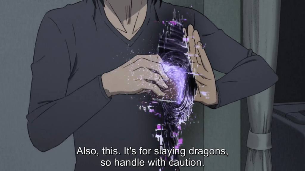 We all like to imagine what it’s like to travel to a strange fantastical world and live out our fantasies there. This could be living the hero life or living on a farm without anyone bothering you and just vibing in the countryside. But what we don’t often think about is the possibility that this life in a strange world isn’t forever. Or more specifically, not everyone who gets sent to a strange world wants to stay there. The same can be said for Uncle. I am aware that he goes by several names but for the sake of this review we’ll stick to just calling him the role he fulfills. Uncle was sent to a strange world and then spent his time there adventuring and searching for a way back. He eventually found his way back to earth, where he was released from the hospital almost two decades later. The world has changed since he was whisked away and it is now up to his nephew, Takafumi and his old friend he just rekindled with, Fujimiya, to help him get used to life on earth again. Of course, they’re also extremely curious about his stories about this foreign world. So let’s talk about this show, its problems and what it brings to the table in today’s review of: Isekai Ojisan – Uncle from another world.