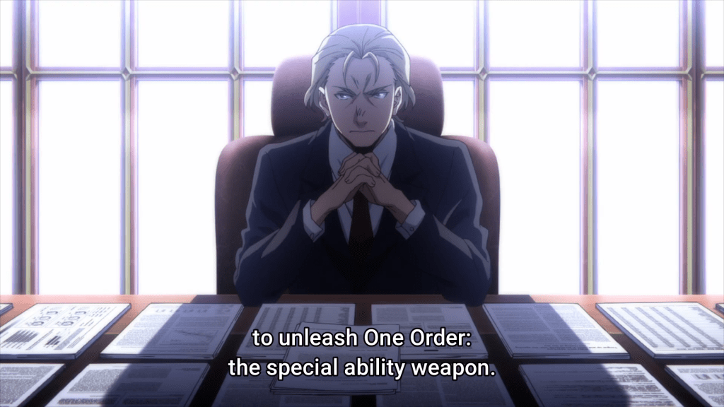 Bram seems opposed to helping Fukichi which pisses the man off. This is the most emotional we’ve seen him so far. And thus, Akutagawa is turned into a vampire. I wonder if the plan is to create a vampire scourge through Akutagawa. And sure enough, all of the executives we know and love, barring Tachihara, have been turned into mindless vampires. Remember how earlier I said things could be worse. They just got worse. But knowing this show, I’m sure most of these characters will come out on the other side alive. Meanwhile the utterly incompetent hunting dogs still think the Armed Detective Agency is responsible. Fukichi not allowing Tachihara to search for an alternative villain shows that he’s getting a bit more careful. But Tachihara is annoyingly good at being in the way. This is forcing Fukichi to talk to Bram, who is kind of out in the open. I wonder if this will end up coming back to bite him somehow. And sure enough, Tachihara was on Fukichi’s trail already. Mori-san isn’t the leader of the mafia for no reason. He’s ruthless when he needs to be, but he treats his people well because he values the results they can bring him.