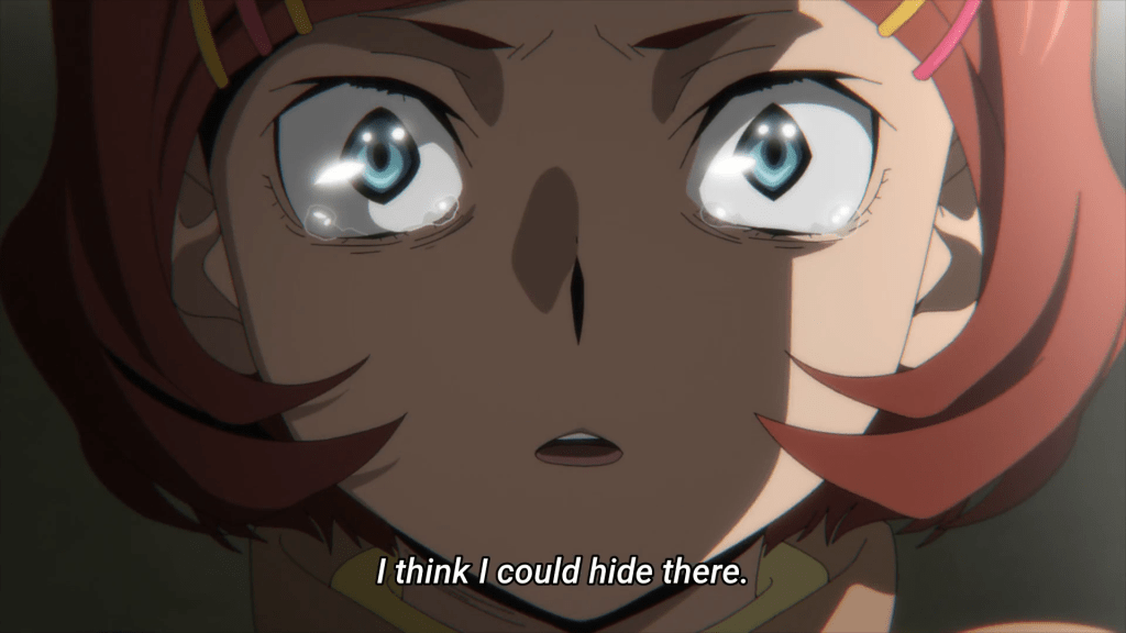 Okay so hear me out, we get to the next scene and I’m now thinking he’s like a double agent pretending to be evil so that Fukichi will trust him and he can betray Fukichi. With how many bad hands the Agency has been dealt, it’s time for Fukichi to experience some bad days too, right? I’m probably wrong on this, I’m often wrong on my predictions in this show, but that’s what makes it fun. Either way, he is let in on the plan and is shown where Bram Stoker is. I’m really hoping this backfires on Fukichi. I think the way for his character to lose is by being overconfident. I can’t see the man losing in any other way. Bram needing protection is a pretty obvious weakness. I think Fukichi and Fyodor shouldn’t have abandoned Nikolai and Sigma in the way they did. They probably would have ended up being liabilities either way, but this way Fukichi wouldn’t have had to bring in Jouno on the plan. Speaking of, I wonder if Nikolai is going to show up here, or perhaps at the prison where Fyodor and Dazai are locked up in. We haven’t seen those two in a while, so it could be the latter.