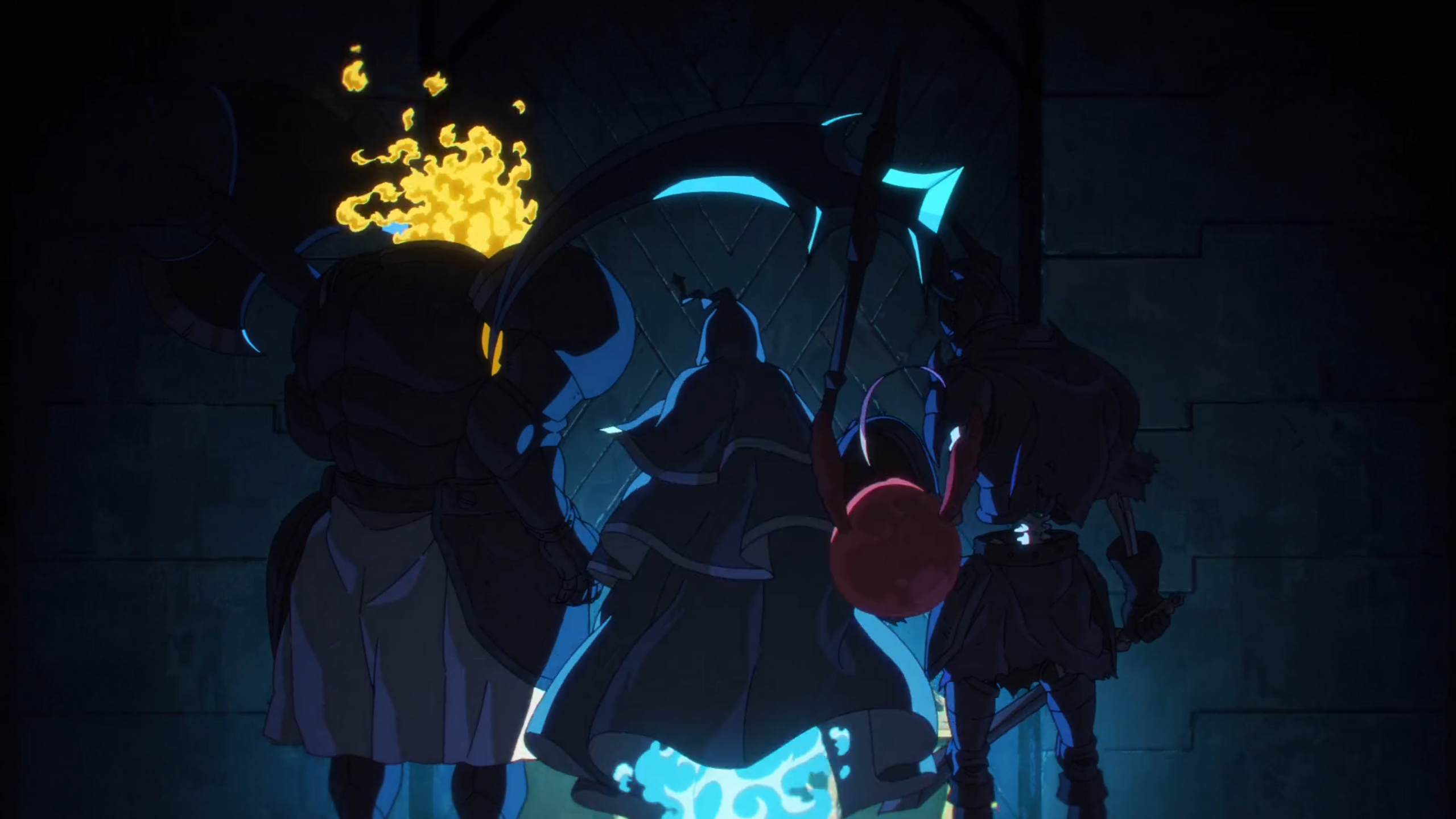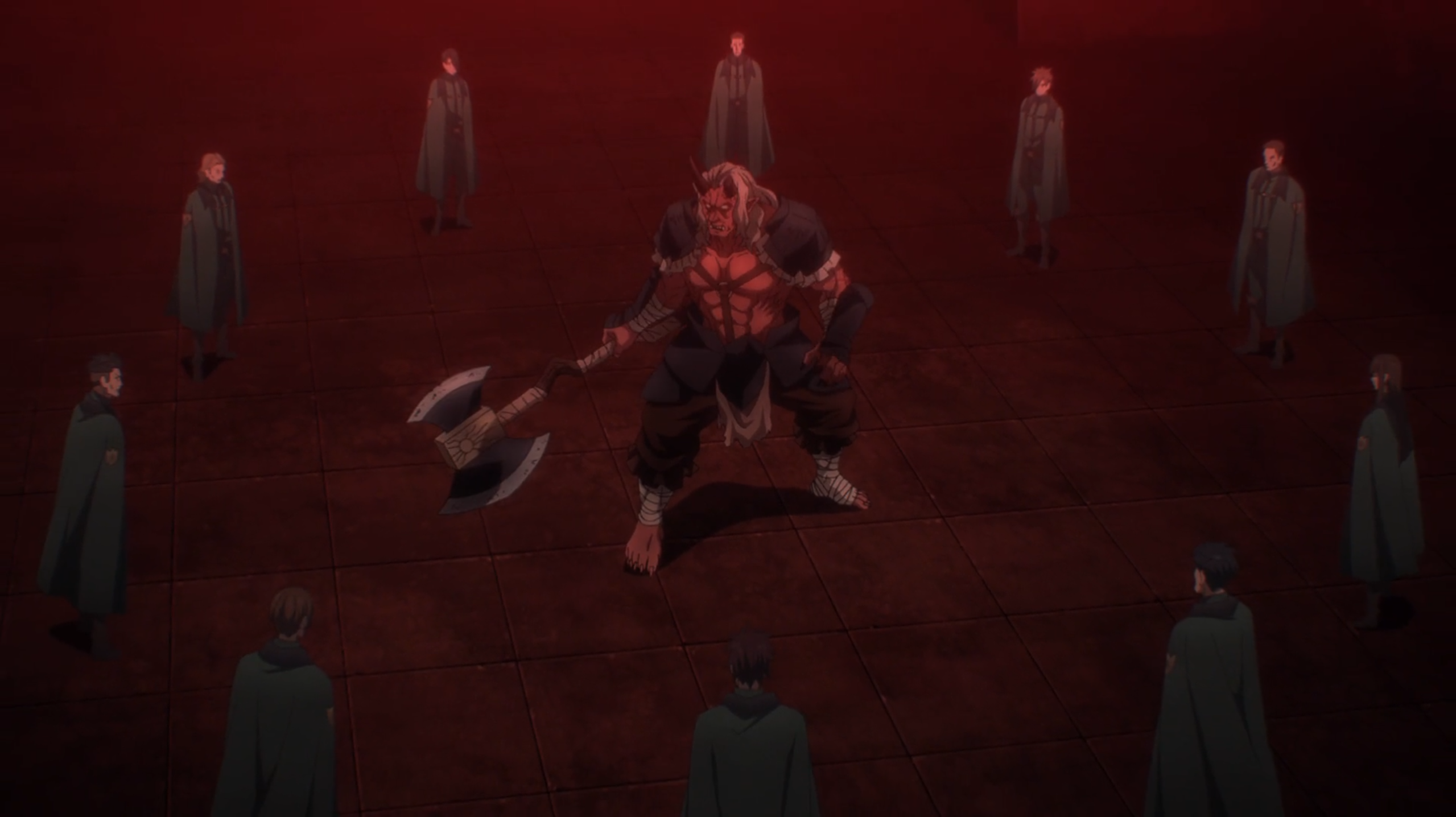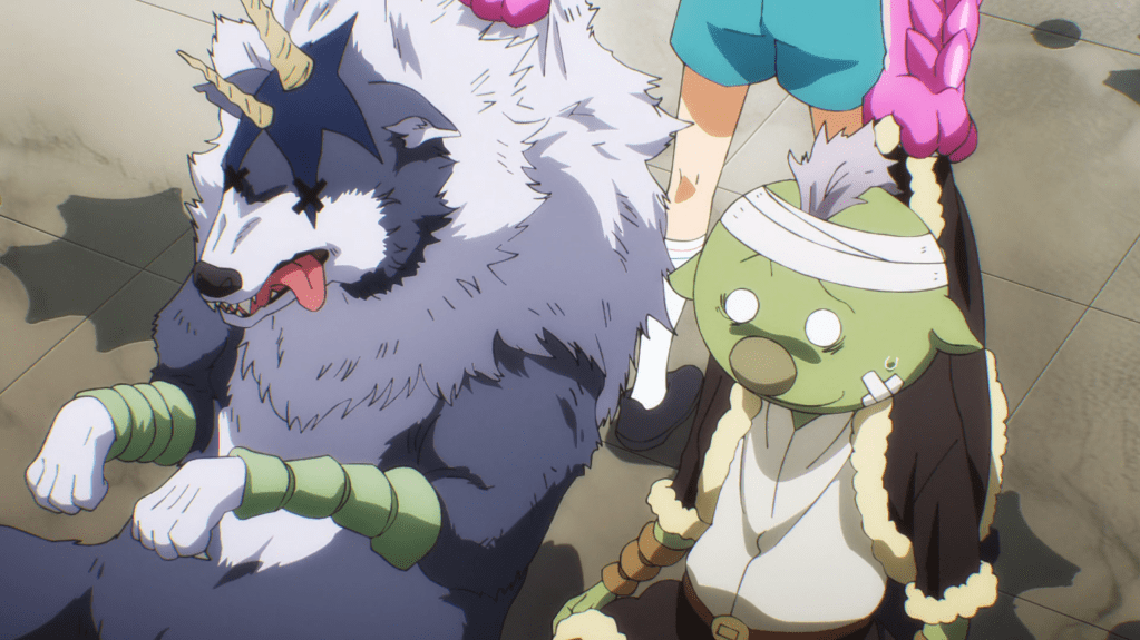 The bottom floor of the labyrinth is dedicated to Rimuru’s research facilities where Gabiru, Vesta, Ramiris and Rimuru himself are all working on different projects. The vessel that Rimuru is creating for Diablo’s assistant – surely that’ll not summon another insane demon – looks different from the more fleshy things we saw in these tubes during the intro song, so I’m curious what that is all about. We don’t get to find out yet though, as Rimuru’s hyperfixation is interrupted by the fact that team Green Fury is about to clear floor 30 of the dungeon. Still far away from the deeper levels, this team is employing every trick they can think of by abusing the different mechanics that Rimuru has put in place. Can’t help but respect the hustle.